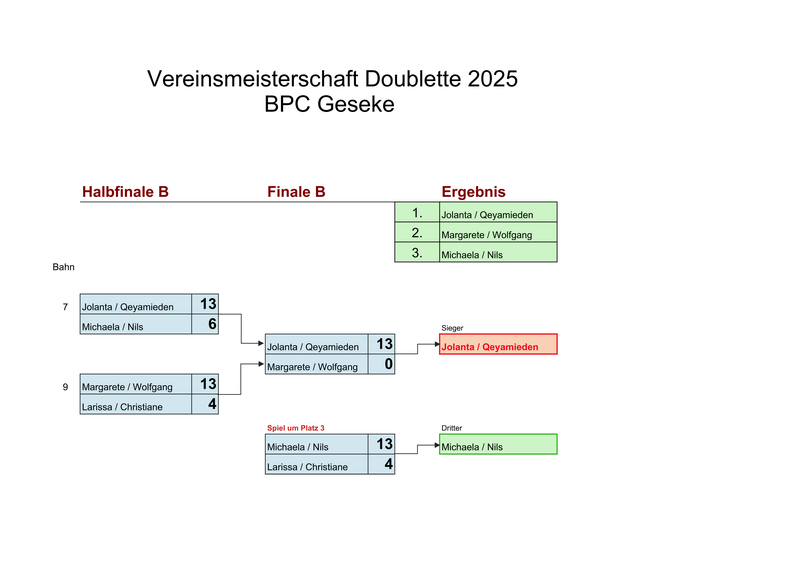 Bitte beachten Sie, dass Doublette-Mixte nicht zugelassen sind.