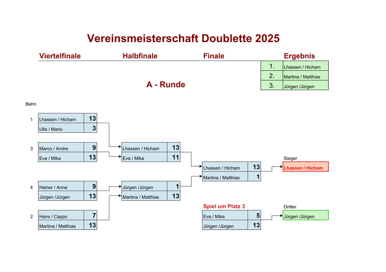 Das Paarturnier 2025 war ein voller Erfolg, und wir freuen uns bereits auf das nächste Turnier. Wir danken allen Teilnehmerinnen und Teilnehmern für ihre Teilnahme und wünschen ihnen viel Spaß und Erfolg bei zukünftigen Turnieren. Wir freuen uns darauf, nächstes Jahr wieder zusammenzukommen und neue Freundschaften zu schließen.